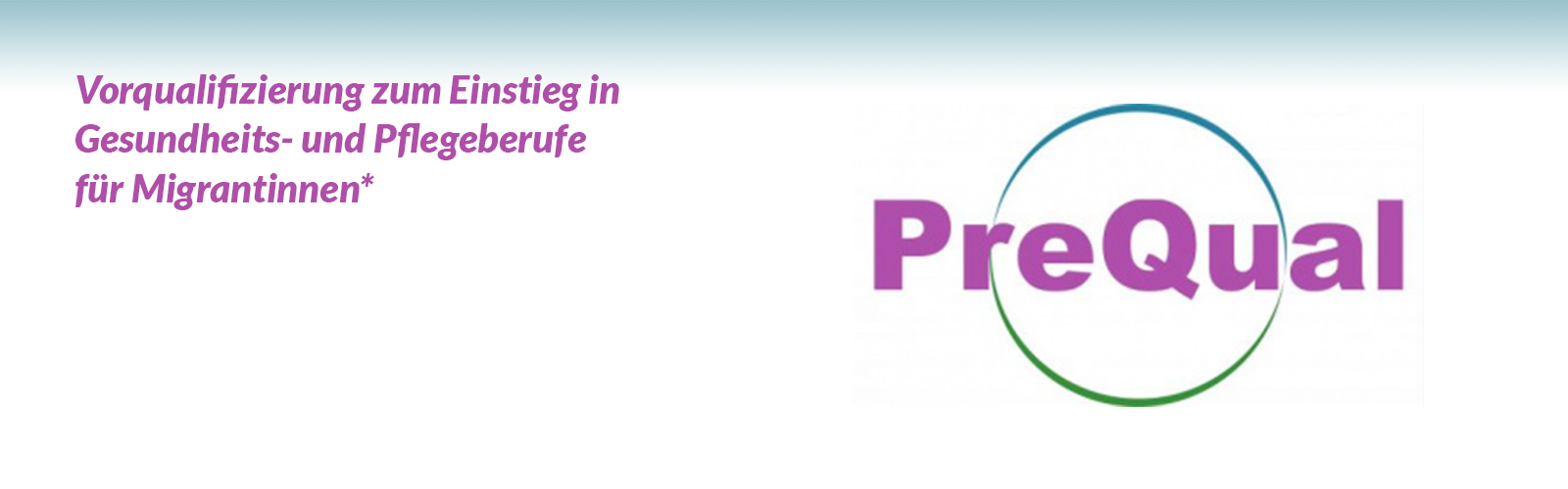 Der PreQual Kurs ist eine Vorqualifizierung für Migrantinnen* im Gesundheits- und Pflegebereich und soll den Zugang von Migrantinnen* zu Gesundheitsberufen und deren Ausbildungen erleichtern. Der Lehrstoff beinhaltet eine Reihe von Modulen, um den Gesundheits- und Pflegebereich aus transkultureller Perspektive näher kennenzulernen und auf weitere Ausbildungen vorzubereiten.